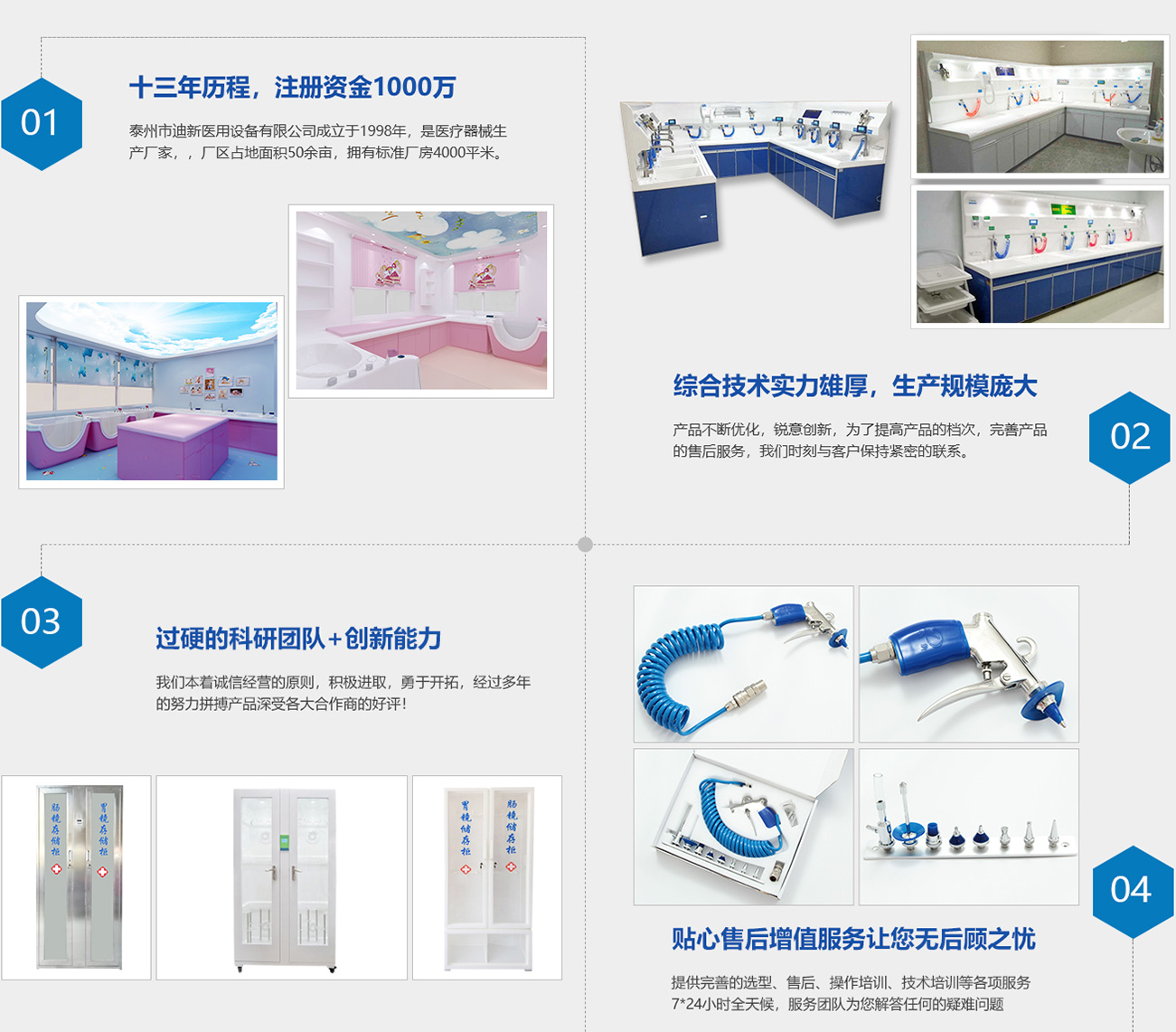 泰州市迪新醫(yī)用設備有限公司成立于1998年,是醫(yī)療器械生產(chǎn)廠家。公司坐落于江蘇省泰州市新區(qū),廠區(qū)占地面積50余畝,擁有標準廠房4000平米。公司在職各類高中級技術人員20余名,職工100余名。我公司是以生產(chǎn)內(nèi)窺鏡清洗工作站、內(nèi)鏡清洗槽、內(nèi)窺鏡儲存柜、超聲波清洗器、高壓水槍、電腦吹干機等為主導產(chǎn)品醫(yī)療器械生產(chǎn)廠家。公司有多年生產(chǎn)設備的經(jīng)驗,實力雄厚,擁有研發(fā)高新產(chǎn)品的能力,完善的加工設備和齊全的檢測手段。公司生產(chǎn)的內(nèi)窺鏡清洗工作站經(jīng)上海長海醫(yī)院、瑞金醫(yī)院、仁濟醫(yī)院、浙醫(yī)附院、湖南醫(yī)大附屬湘雅醫(yī)院、江蘇省人民醫(yī)院等一大批內(nèi)窺鏡專家使用后一致認可,被推廣應用。多年來,企業(yè)不斷開拓創(chuàng)新,競爭拼搏,本著“精心制造、誠心服務、低價銷售、重守合同、送貨快捷”的宗旨,贏得了廣大消費者的認可。誠實守信、共贏進取是每個迪新人的精神基石,我們熱誠期盼與各企事業(yè)單位合作俱進,共創(chuàng)輝煌。現(xiàn)我公司誠招各省市地區(qū)代理商。歡迎各家醫(yī)院來電來函洽談!